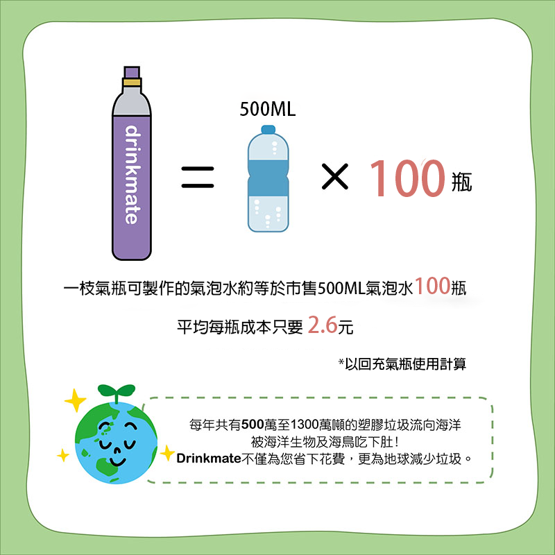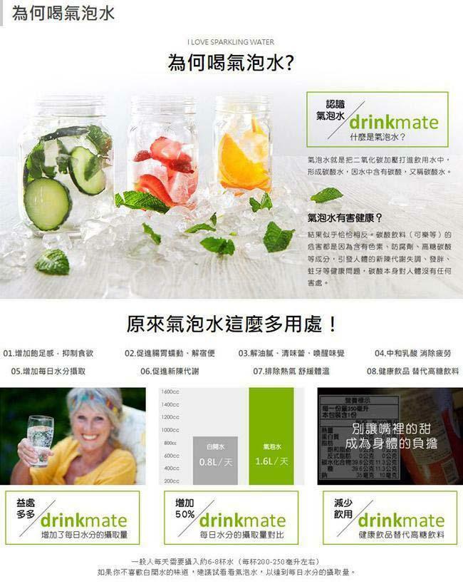 drinkmate的產品又完美的解決了這個問題,不僅外型修長好看,不耗電的功能也讓攜帶、使用更便利,不論你在車上、飯店還是野外,隨時拿出drinkmate,你就能輕鬆快速的享受1杯氣泡飲。